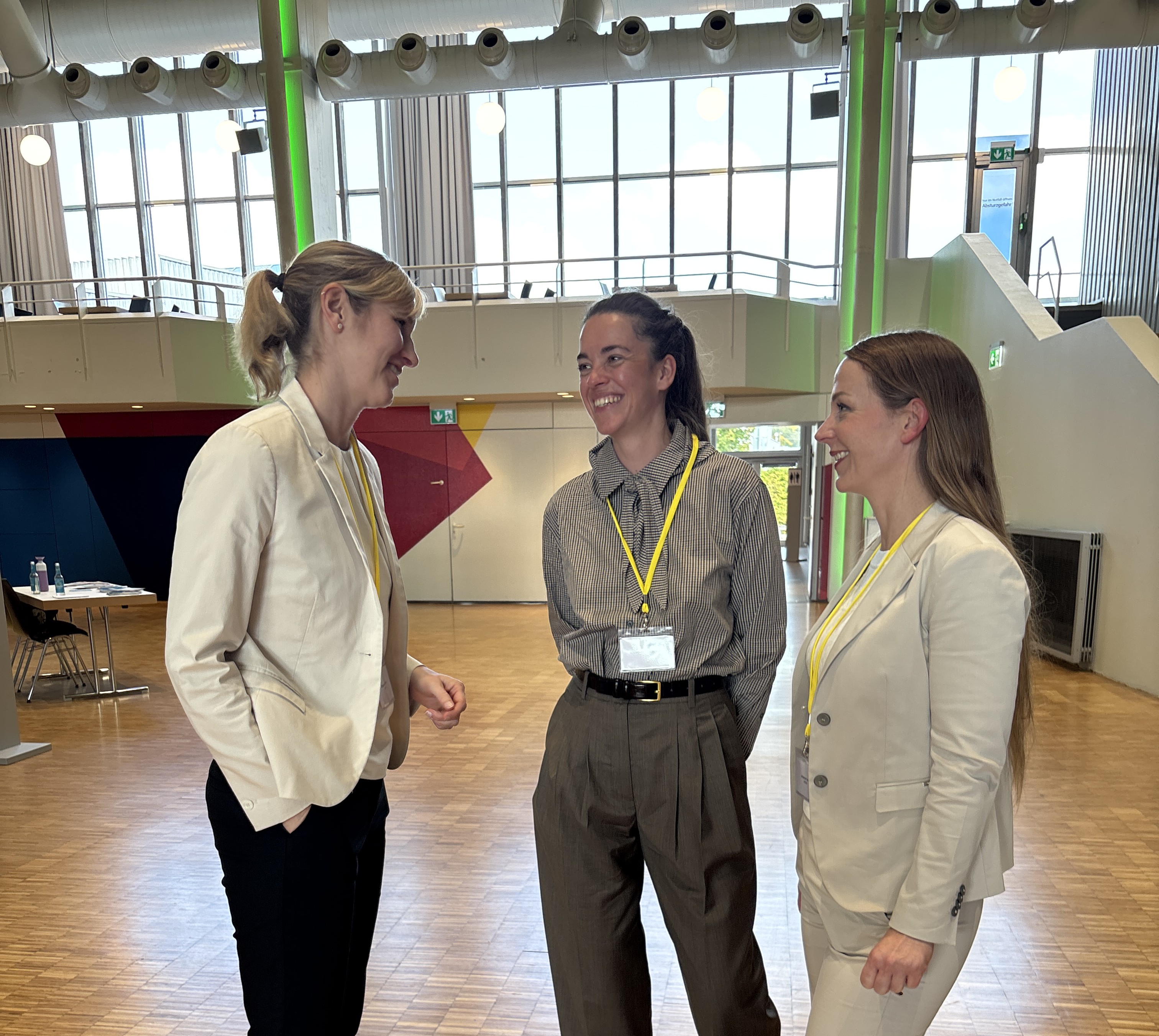 Fachlicher Austausch in den Workshop-Pausen – Christine Ottmann, Jaqueline Metken und Johanna Leiker von HBSN.